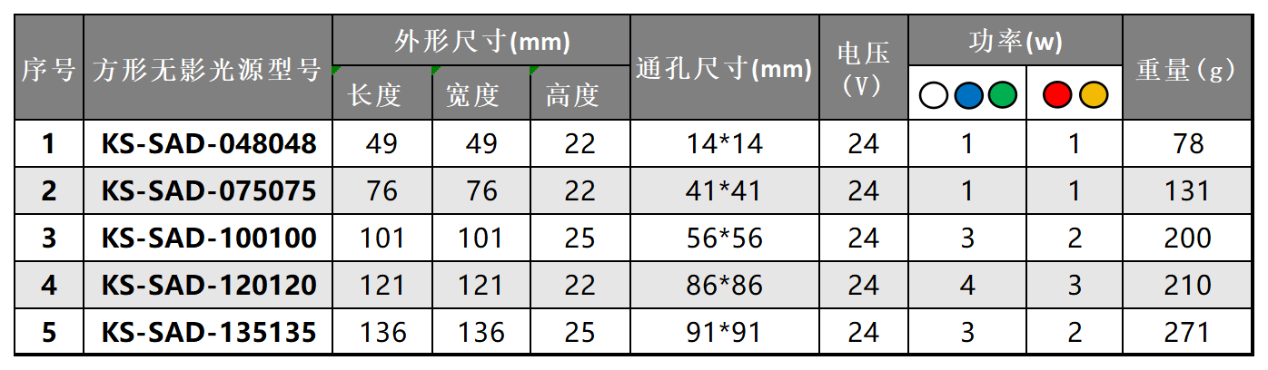 1.獨特的結(jié)構(gòu)設(shè)計,可實現(xiàn)四面無影照射效果